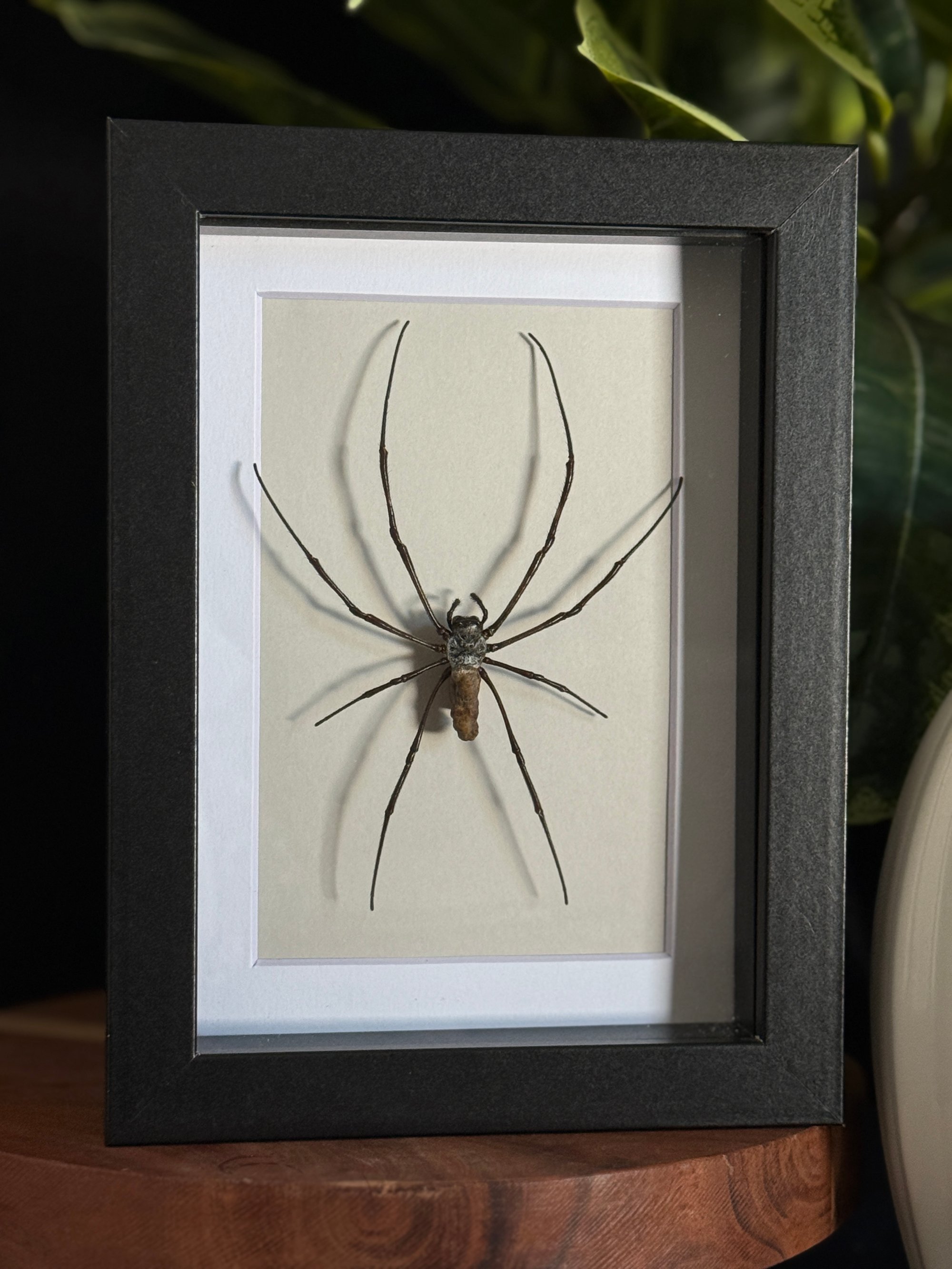 5X7 black frame featuring a spread orb weaver spider